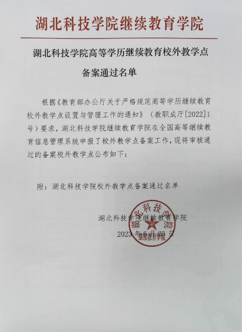9428cn太阳集团高等学历继续教育校外教学点备案通过名单